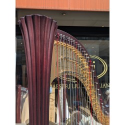 Harpe à pédales de concert Lyon & Healy, modèle Style 100, 187cm, 35 kg, 47 cordes, table large, finition acajou. La harpe est âgée de 3 ans et est en excellent état général, malgré quelques légers défauts esthétiques sur la table et la colonne.